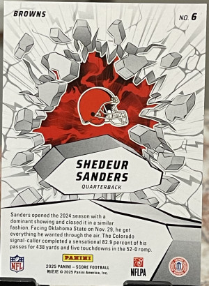 2025 Panini Score Shedeur Sanders Emerged #6 Rookie RC Cleveland Browns