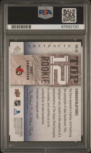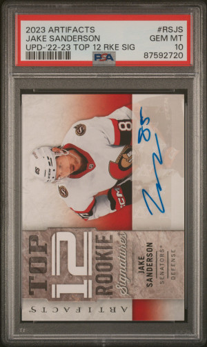 2023 Upper Deck Artifacts Update Jake Sanderson Upd-'22-23 Top 12 Rke Sig PSA 10 Gem Mint