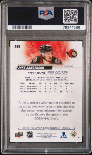 2022 Upper Deck 468 Jake Sanderson Young Guns PSA 10 Gem Mint