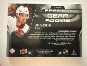 2022-23 Upper Deck Premier Gear Rookie 5 Patch Jake Sanderson /25 #PGR-SA