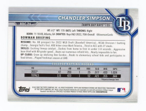 2022 Bowman Chrome CHANDLER SIMPSON 1st Rookie RC YELLOW GOLD SAPPHIRE #/99 SP Tampa Bay Rays
