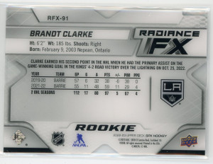 2022-23 SPx #RFX-91 Brandt Clarke Rookie Radiance FX /549