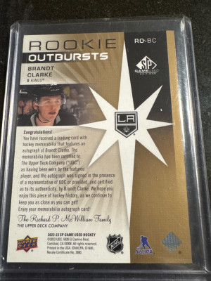 2022 Sp Game Used Inked Rookie Sweaters Patch Autographs Brandt Clarke
