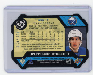 2020-21 Upper Deck UD3 #UD3-47 Dylan Cozens Future Impact 134/1000