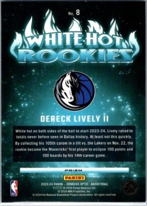 2023-24 Donruss Optic #8 Dereck Lively II White Hot Rookies Holo