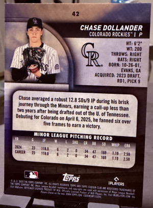 2025 Topps Stadium Club #42 Chase Dollander Colorado Rockies (RC)