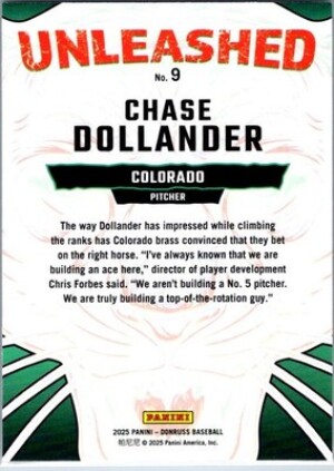 2025 Donruss #9 Chase Dollander Unleashed