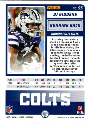 2025 Panini Prizm #383 DJ Giddens Lazer