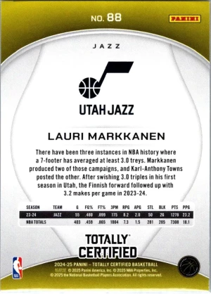 2024-25 Panini Totally Certified #88 Lauri Markkanen