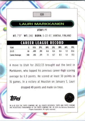 2023-24 Topps Chrome Cosmic #131 Lauri Markkanen