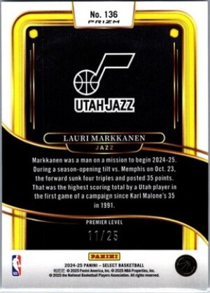 2024-25 Panini Select #136 Lauri Markkanen Blue Disco Prizm #/25