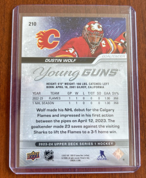2023 Upper Deck Dustin Wolf #210 Young Guns PSA 10