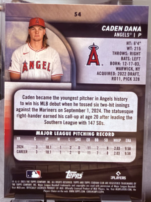 2025 Topps Stadium Club Caden Dana #54 Rookie Card RC Los Angeles Angels