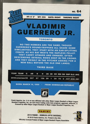 2019 Panini Donruss Optic- Rated Rookies VladimirGuerrero Jr. #64 Holo (RC)