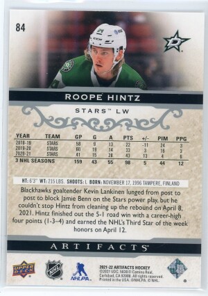 2021-22 Artifacts #84 Roope Hintz Silver Spectrum 176/299
