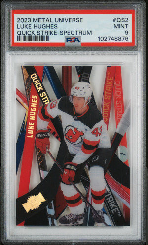 2023 Skybox Metal Universe Luke Hughes RC Quick Strike Spectrum SSP /25 PSA 9 POP 1 None Higher