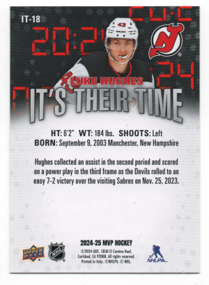 2024-25 Upper Deck MVP It's Their Time #IT-18 Luke Hughes