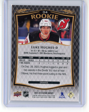 2023-24 Upper Deck Stature #34 Luke Hughes Rookie Orange /199