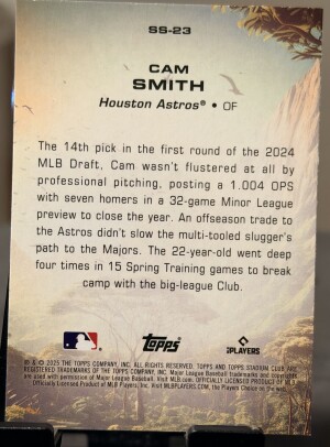 2025 Topps Stadium Club - Savage Sluggers Cam Smith #SS-23 (RC)