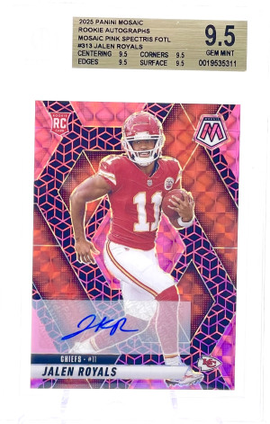 2025 PANINI MOSAIC ROOKIE AUTOGRAPHSMOSAIC PINK SPECTRIS FOTL#313 JALEN ROYALS