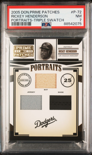 2005 Donruss Prime Patches Portraits Rickey Henderson Portraits-Triple Swatch