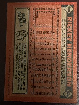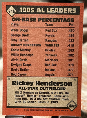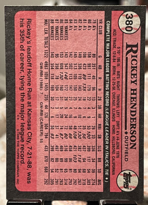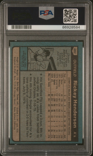 1985 Topps Rickey Henderson PSA 7 Oakland A’s