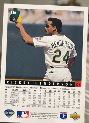 1993 Upper Deck Rickey Henderson #136 Gold Hologram