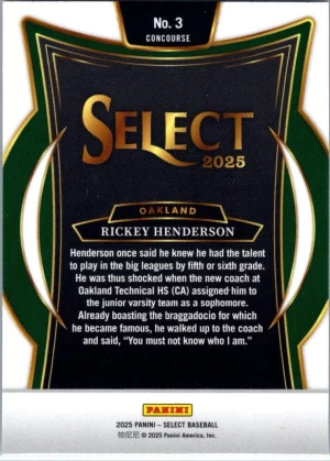 2025 Panini Select #3 Rickey Henderson Silver Prizms