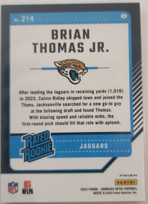 2024 Donruss Optic Brain Thmas Jr Blue Hyoer Rated Rookie