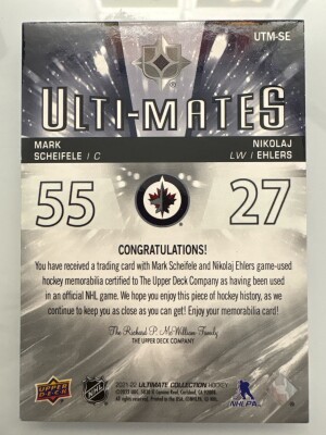 Mark Scheifele, Nikolaj Ehlers, 2021-22 Ultimate Collection Hockey, Ultimate-Mates, Patch /35
