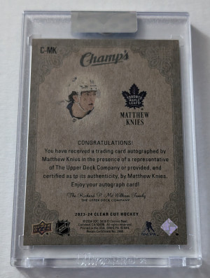 2023-24 Upper Deck Clear Cut Champs Autos - Rookies Matthew Knies #C-MK