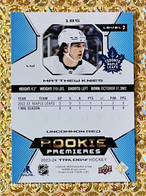 2023-24 Upper Deck Trilogy #185 Rookie Premieres Matthew Knies Uncommon Red /99 (RC)