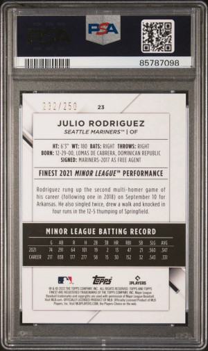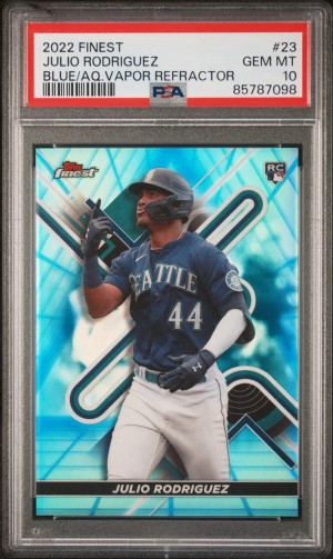2022 Topps Finest JULIO RODRIGUEZ Rookie BLUE AQUA VAPOR REFRACTOR #/250 PSA 10 Seattle Mariners Color Match