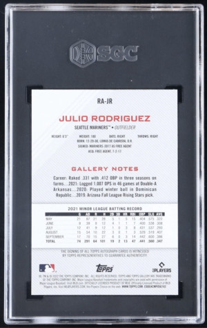 Julio Rodriguez 2022 Topps Gallery Rookie Autographs #RAJR RC SGC 9.5 Auto 10.