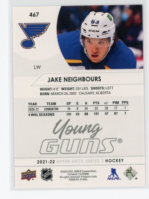 2021-22 Upper Deck #467 Jake Neighbours Young Guns