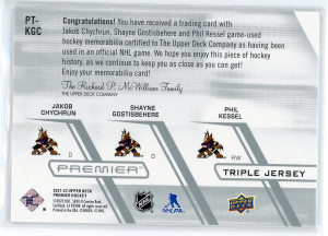 Jakob Chychrun Shayne Gostisbehere Phil Kessel2021-22 Upper Deck Premier Triple Jersey /49