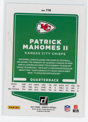 2021 Donruss #116 Patrick Mahomes Press Proof Premium
