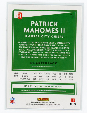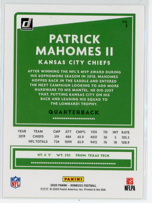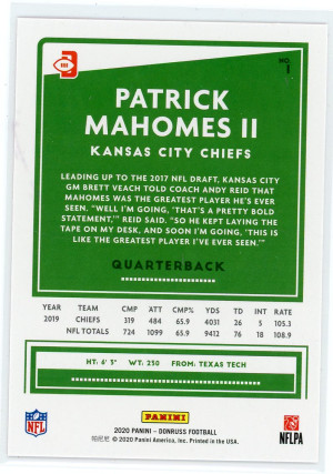2020 Donruss #1 Patrick Mahomes Press Proof Red