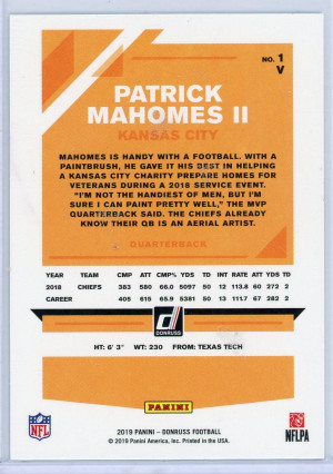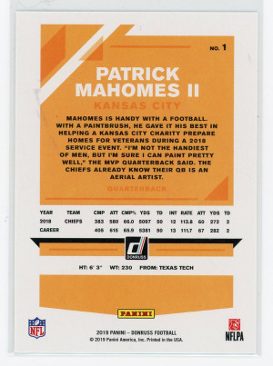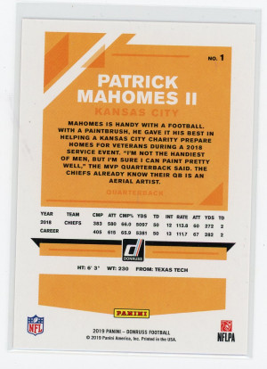 2019 Donruss #1 Patrick Mahomes Press Proof Variation Red