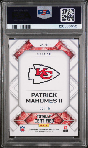 2024 Panini Totally Certified Totally Gems Patrick Mahomes II Totally Gems-Platinum 3/15 Kansas City Chiefs SSP