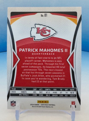 2024 Panini Certified Orange Mirror #81 Patrick Mahomes /150 Chiefs Red Raiders