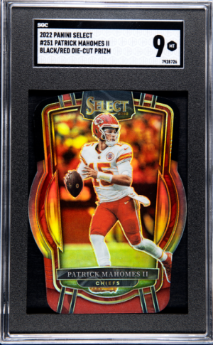 2022 Panini Select #251 Patrick Mahomes II Black/Red Die-Cut Prizm SGC 9