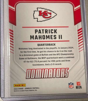 Panini Donruss Football - Dominators#2 Patrick Mahomes, Kansas City Cheifs