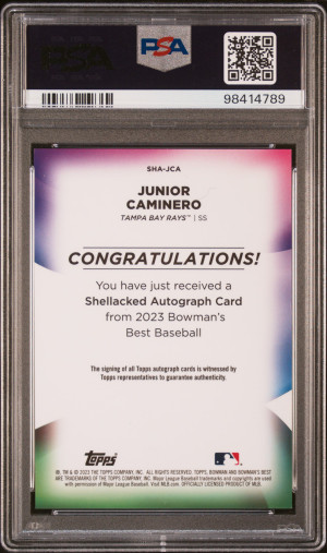 2023 Bowman's Best Shellacked Autographs Junior Caminero Shellacked Au-Mn Dia Rf