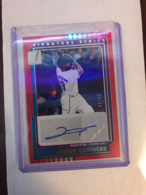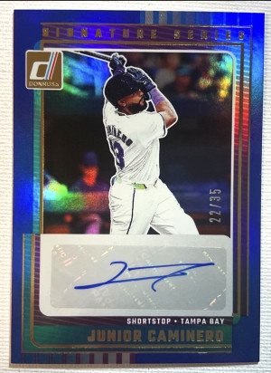 2025 Donruss Junior Caminero Signature Series Blue 22/35 Tampa Bay Rays SG-JCM