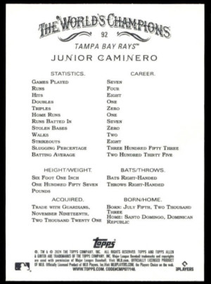 2024 Topps Allen & Ginter X #92 Junior Caminero Tampa Bay Rays RC