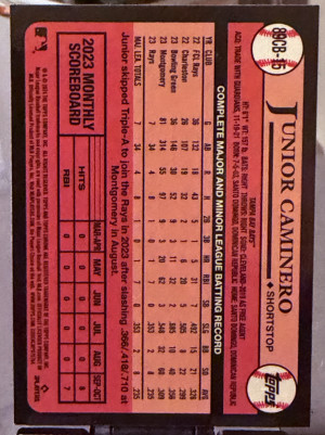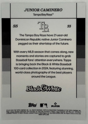 2024 Topps Black & White JUNIOR CAMINERO Rookie RC Tampa Bay Rays #55
