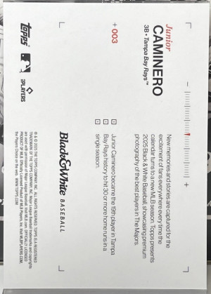 2025 TOPPS BLACK AND WHITE - Junior Caminero #003 - Tampa Bay Rays