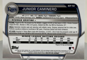 2023 Bowman Chrome Prospect Autographs Junior Caminero Chrome Prospect Auto