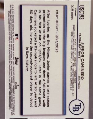 Junior Caminero 2024 Topps Chrome Baseball Refractor #213 RC - Tampa Bay Rays